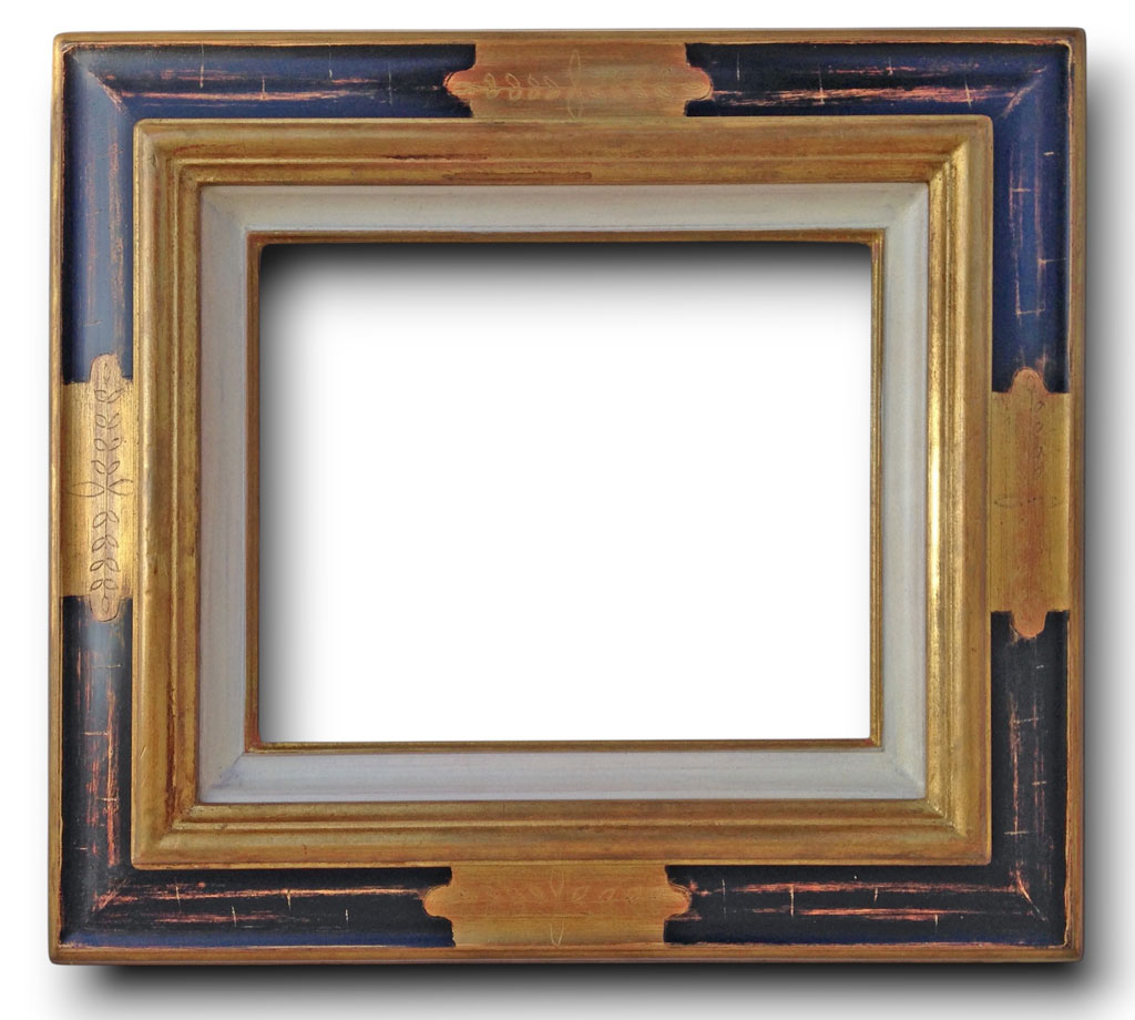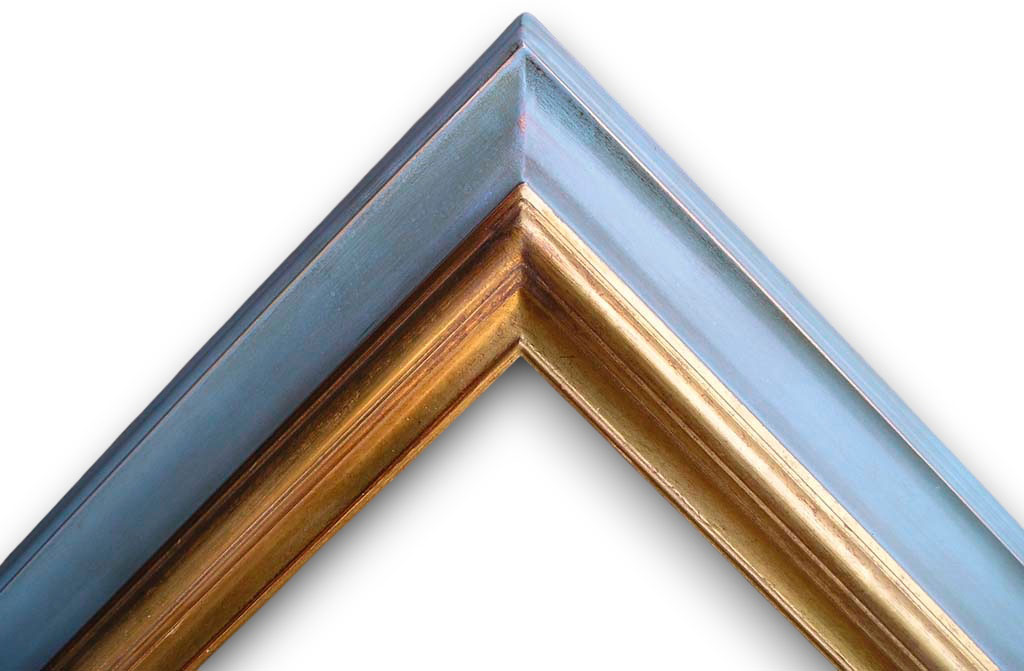 Héba vieux bleu brossé boudin or traces de feuilles